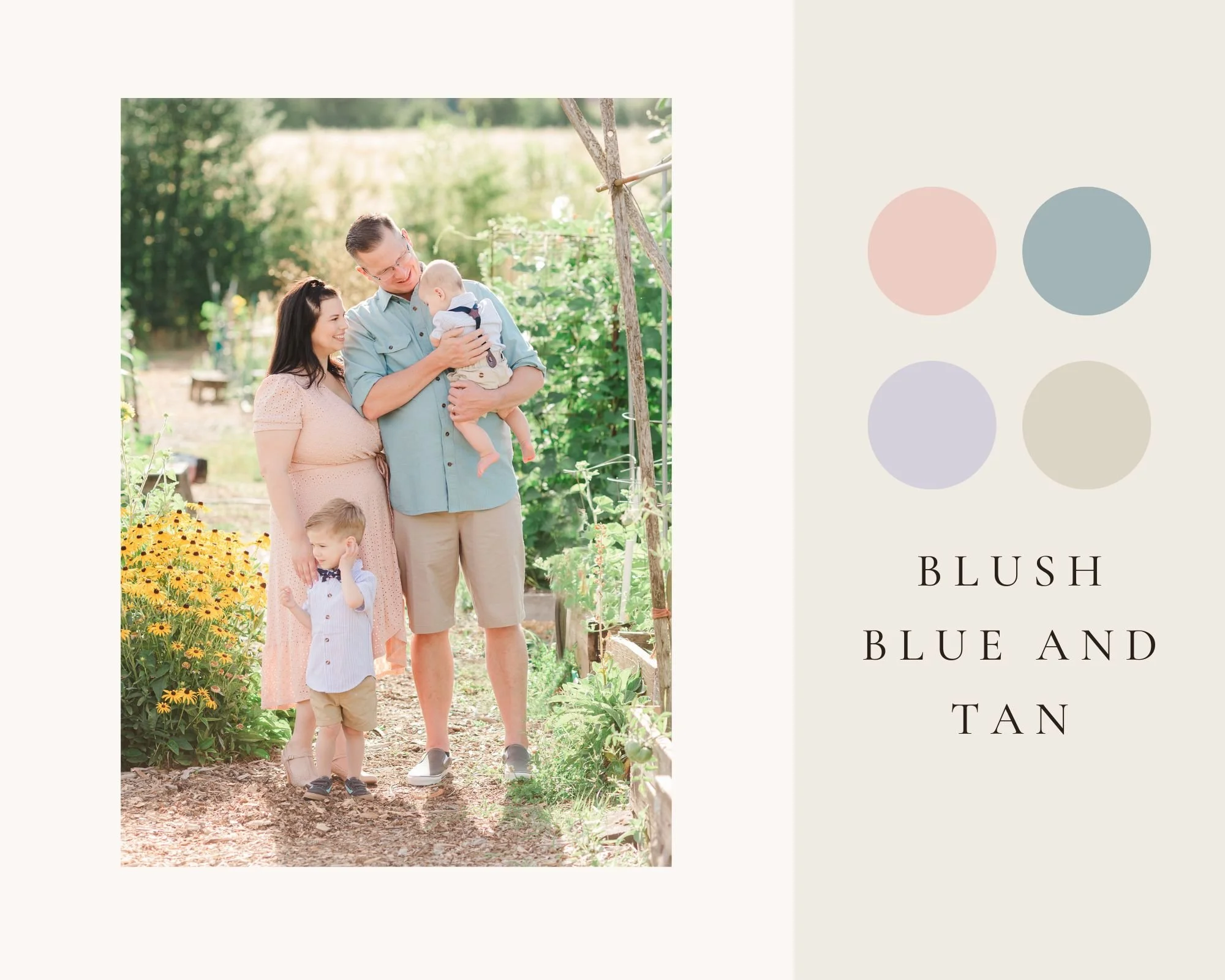 Blush and blues pair well with tan, and will look particularly beautiful for your spring session.