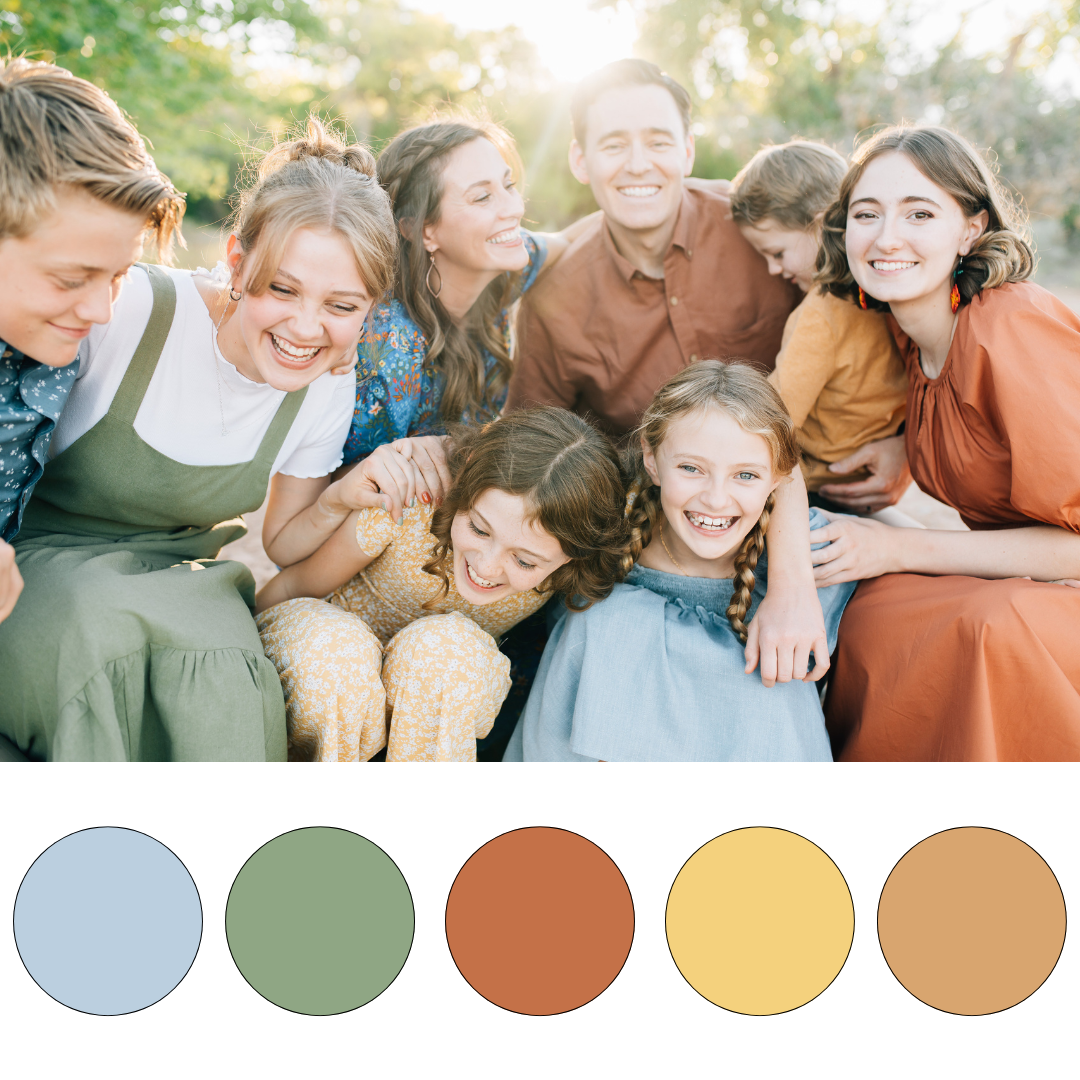 Start with one anchor piece: Let one family member (usually mom or dad) wear the strongest color or pattern; coordinate others around that palette.